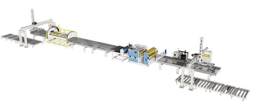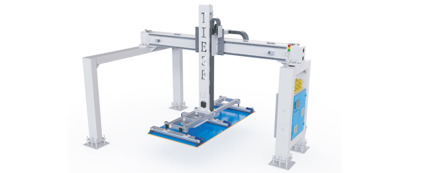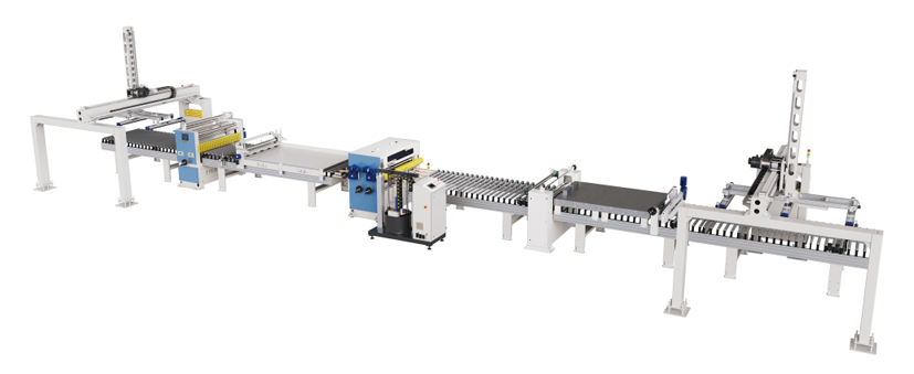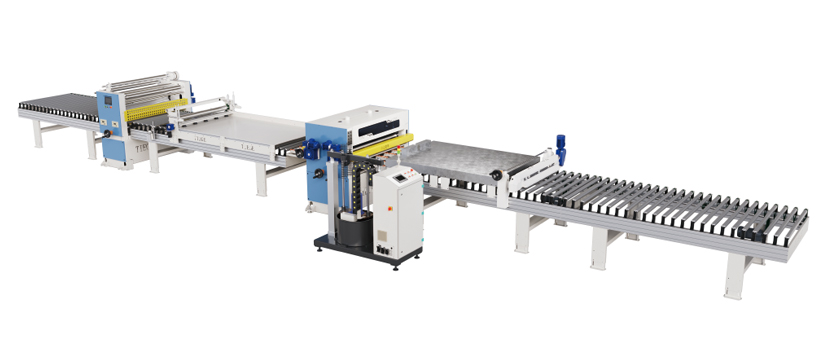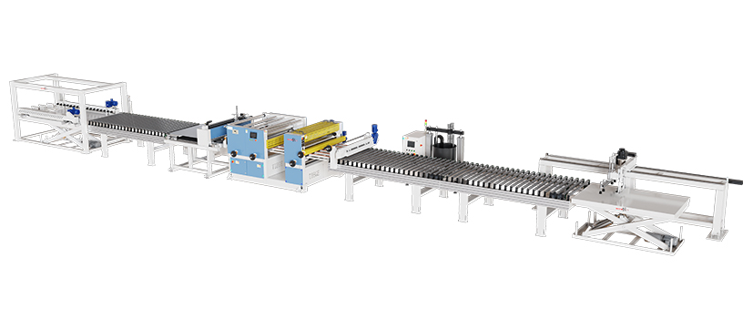 贴纸机_龙门上下料_除尘_两辊涂胶四辊贴合_切断修边_翻板