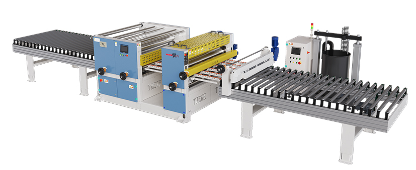贴纸机_推料机_除尘_两辊涂胶四辊贴合_切断修边_下料机